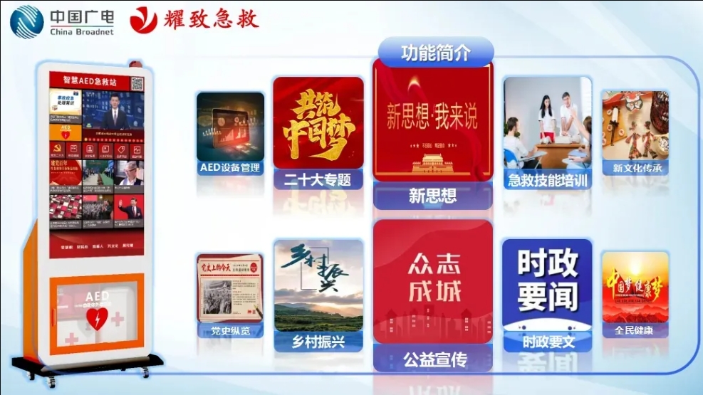 同时,为响应国家政策,充分发挥科技创新在“健康中国2030”建设中的支撑引领作用,中国广电广州公司与耀致急救联合开发应急型警用急救箱一体化管理平台,助力提速公安系统的应急体系现代化建设。