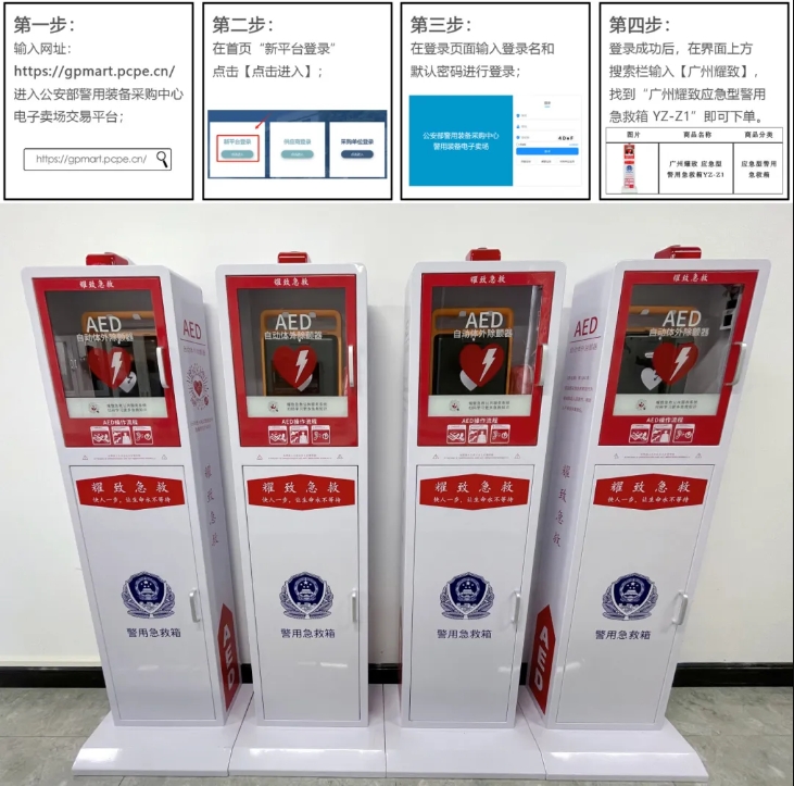 近一个月内,全国多地公安系统通过【012】平台点单采购警用急救箱&AED,耀致急救与各地经销商积极响应,为全国多地公安局、派出所、交警队等基层所队完成了AED配置工作。并协助多地公安系统积极开展应急救护培训,以确保设备的有效使用和人员的专业操作。