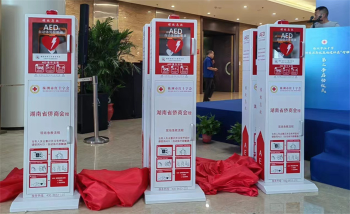 今年初,株洲市红十字“心肺复苏急救基地进社区”第一季行动,将首批15台红十字应急救护一体机安置在人流密集的社区,护航公众生命安全。
